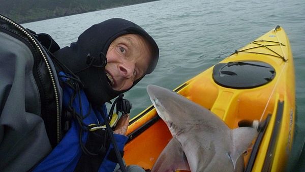 Brit ulovil na malém kajaku téměř dvoumetrového žraloka