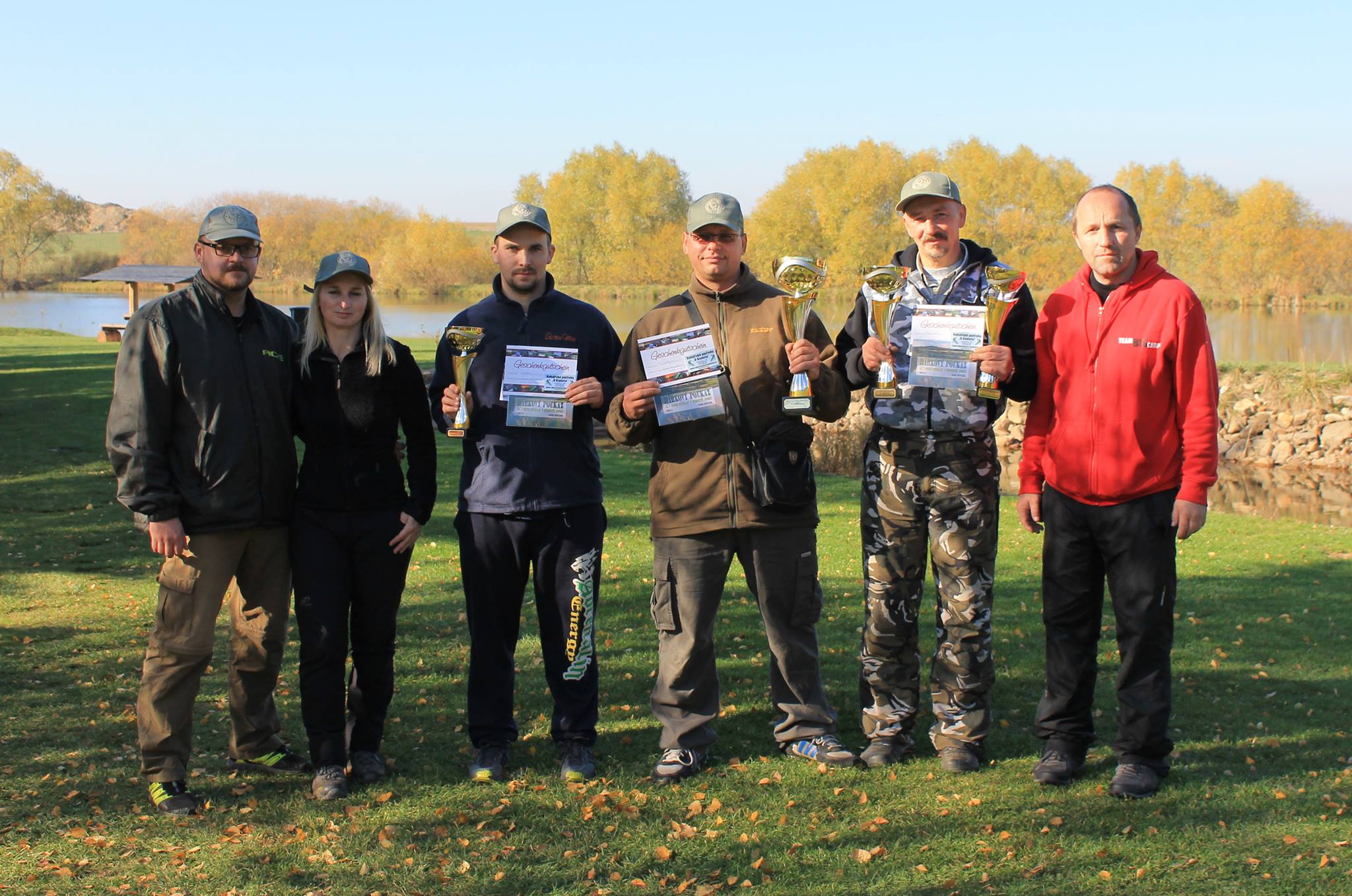 Kolem poledního začíná vyhlášení výsledků. Všem závodníkům se dostává pozornosti pořadatelů a tak nikdo neodchází s prázdnou. Což si myslím, že po poslední mrazivé noci zahřeje na rybářské dušičce každého. Sláva se provolává závodníkům od chvostu výsledkového žebříčku. Těsně pod bednou začínám špicovat uši, co kdyby. Ne, nedočkal jsem se. Je z toho bedna. Krásné a nečekané 3. místo, se kterým jsem se během konce závodu hned několikrát loučil. Obavy byly sice na místě, ale nevyplnily se. Přebírám krásný pohár, finanční odměnu a kopici věcných darů. Pár fotek s ostatními závodníky, pořadateli a už to zase vrtím s rybářským náklaďákem zpět směr Praha.