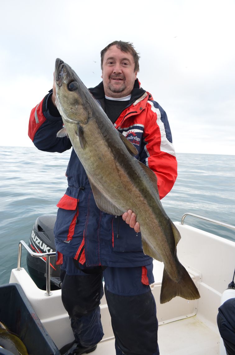 Už když jsme připlouvali, bylo vidět, že na hladině je živo. Sledi asi zabrousili i sem. Vzhledem k menší hloubce u vrcholu jsem se rozhodl, že začnu s lehčími nástrahami a postupně přejdu k těm nejtěžším. Než se mi podařilo uvázat vláčecí pilkr, na palubě už se třepotala první ryba. Treska obecná, které do metru moc nechybělo, a šťastným lovcem byl rybářský elév Michal. Nahodil jsem a několikrát zacukal pilkrem. Prásk! „Tak to byla pecka,“ okomentoval jsem razantní útok ryby na přívlačový pilkřík. Bzzzzz... brzda navijáku se rozječela téměř okamžitě. Po pěti minutách nevídaných úniků s prutem ohnutým do luku a prokluzujícími kotoučky brzdy jsem začal hádat: „To by mohl být halibut, táhne jako ďábel,“ doufal jsem. Po dalších minutách se tři hlavy netrpělivě naklonily přes bok lodi. Ještě metřík, ještě jeden... už snad bude vidět! V hlubině poprvé problesklo velmi slušné tělo a s přibývajícími centimentry bylo jasnější a jasnější. „Obecňačka jako kráva, ne halibut, ne, je to... polak a řádný.“ Nádherné zlatavé tělo se ještě několikrát prohnalo podél lodi a pak jsme ho společnými silami vytáhli na palubu. Bylo to opravdové „dělo“ rovných 107 cm dlouhé! Má největší treska polak v životě. Tak to je začátek, jak má být...