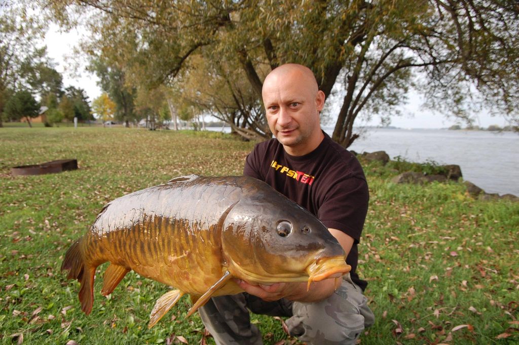 námi označená křížkem, tedy ta vyhodnocená jako nežádoucí... No nedalo se nic dělat, museli jsme se rozhodnout pro to menší zlo. Zvolili jsme tedy č. 48, místo na konci sekce. Nacházelo se u větší zátoky v kempu, kde jsme den před tím byli a kde se nám to nelíbilo... Zátoka měla pouze jednu dobrou stránku, a to, že tam nebyl žádný proud. Jednalo se tedy o stojatou vodu, což věštilo vcelku dobré podmínky na lov. Na první pohled vypadalo všechno v maximálním pořádku. Hlavní problém našeho místa spočíval v poměrně mělké vodě, přes kterou bylo téměř nemožné přitáhnout a zdolat rybu ze břehu. Mělčina byla dlouhá přibližně 30m a hloubka se pohybovala od 10 do 50cm! Lovné místo se nacházelo přibližně 70m od břehu, což bylo téměř nesmírně náročné na zakrmování, nahazování, ale i zdolávání. Proto jsme se rozhodli, že na tomto místě budeme chytat „z vody“. Vanja si postavil svoji základnu 30m od břehu v hloubce 30cm. To se však dalo pouze během dne, protože v noci a během bouří to zde bylo velmi nebezpečné.Já jsem se usadil k hlavnímu toku řeky, kde Vanja našel zlom ze 2m na 7m. Nahazoval jsem přibližně 50 - 60m, ale výhodou bylo, že jsem mohl v broďákách projít 20m a zakrmovat lopatkou nebo katapultem a zbytek jsem musel pracně nahazovat raketou. Díky Bohu, že jsme měli největší verzi, takzvaný „dumpsterů“, což je asi dvojnásobek velikosti regulérní rakety. Již po první noci nám bylo jasné, že máme šanci zabodovat, ale problémem byla vysoká ztráta ryb. Přes 60% ryb jsme ztráceli v řasách, nebo při přeříznutí vlasců od místních „zebra mussels“, což je jakási odrůda škeblí, která dominuje téměř po celé délce řeky. Některá místa jsou jimi doslova osetá.