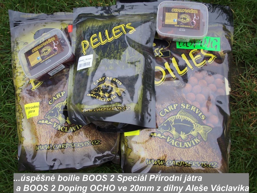 S sebou jsem si vezl boilie z dílny Aleše Václavíka a to: Boilie BOSS2 Speciál Přírodní játra ve 20 mm a BOOS2 Doping Ocho ( Oliheň/Chobotnice). Na tyto dva druhy boilie nedám dopustit a beru je vždy na každou výpravu, kterou podnikám. Oba pruty jsem si rozhodil po obou stranách a do různých vzdáleností. Nemohl jsem moc experimentovat s hloubkou a členitostí dna, protože je zde klasická vana, ale v některém z předešlých článků jsem zmiňoval lov kaprů v korytě a i to, že se dají v této "vaně" nachytat krásné ryby.