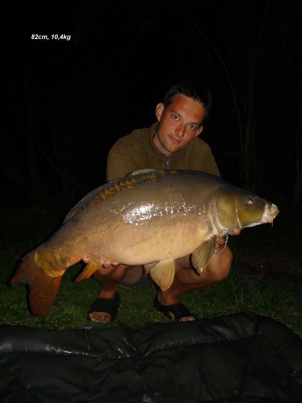 Je tu čtvrtek a přes den chytáme jen pár malých ryb. Velké naděje vkládáme na naši poslední noc. Večer přehazujeme a dokrmujeme každý cca 40kulí. První záběr od větší ryby přichází na Dubínkův prut. Vytahuje kapra 69cm.Tentokrát mu zachutnala příchuť monster craba. Ale já se určitě nenechám přechytat a kontruji krásným šupíkem 81cm, 10,5kg. Opět krásná ryba, která tentokrát zabrala na příchuť kaviáru. Vpátek ráno každý vytahujeme jen pár malých ryb a začíná nejhorší část výpravy a to balení a odjezd domů. Na to jaké panovalo po celou dobu výpravy počasí, tak si myslím, že můžeme být s rybačkou v celku spokojeni.