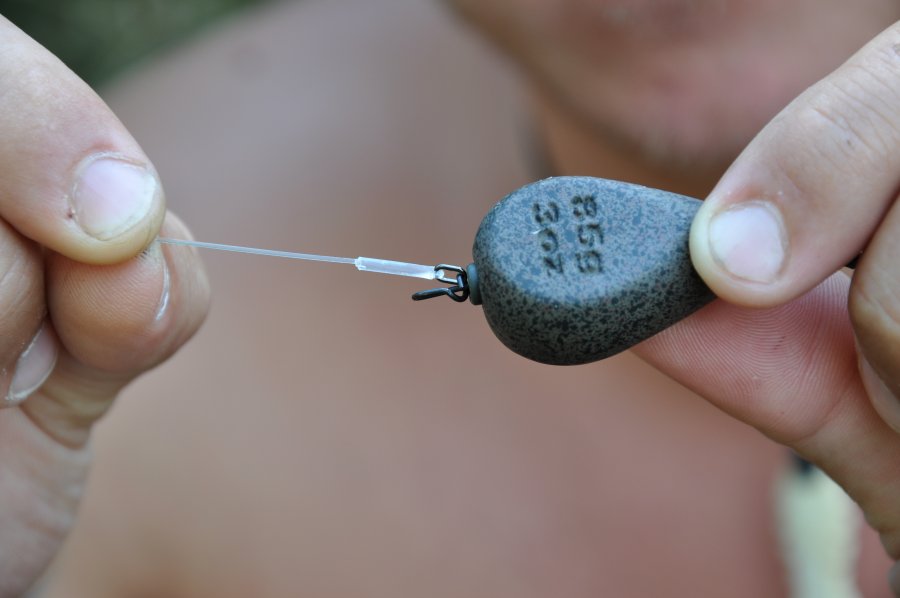 I když si tuto sestavu můžete navázat pomocí kravského uzle a kusu tuhého fluorocarbonu, my jsme z důvodu rychlosti navázání a hlavně pevnosti celé sestavy zvolili hotový návazec Stiff link. Tyto nástavce jsou nabízeny v několika délkách a librážích a jejich zatavené konce jsou pevnější než jakýkoliv jiný uzel. Díky očku na jednom konci a kovovému oválku na konci druhém jsou navázány během pár vteřin a stejně snadná je i výměna celého návazce nebo pouze jeho měkké části.