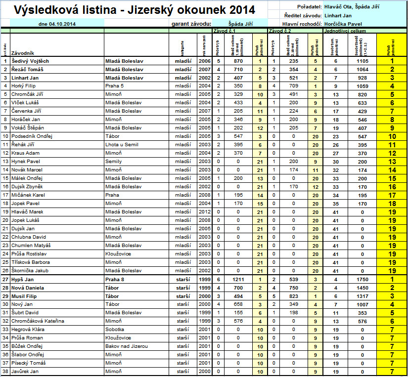 Podrobné výsledky závodu najdete níže. Výsledkovou listinu lze rozkliknout.