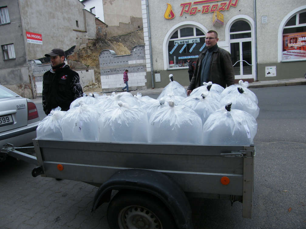 Ve čtvrtek 5.4 2012 měla před Boleslavským rybářským svazem sraz partička rybářů, která se zhostila provedení radostného úkolu a ušlechtilého činu - tím nebylo nic jiného, než vysazení malých úhoříků do do řeky Jizery a okolních revírů. Igelitové pytle plné úhořího plůdku jsou nachystány a je potřeba nové přírůstky co nejdříve vypustit do nového domova. Tímto přeji malým úhoříkům úspěšné překonání všech nástrah které na ně čekají, odolání číhajícím predátorům a dožití se věku, kdy je geny nasměrují na dalekou cestu k Sargasovému moři.