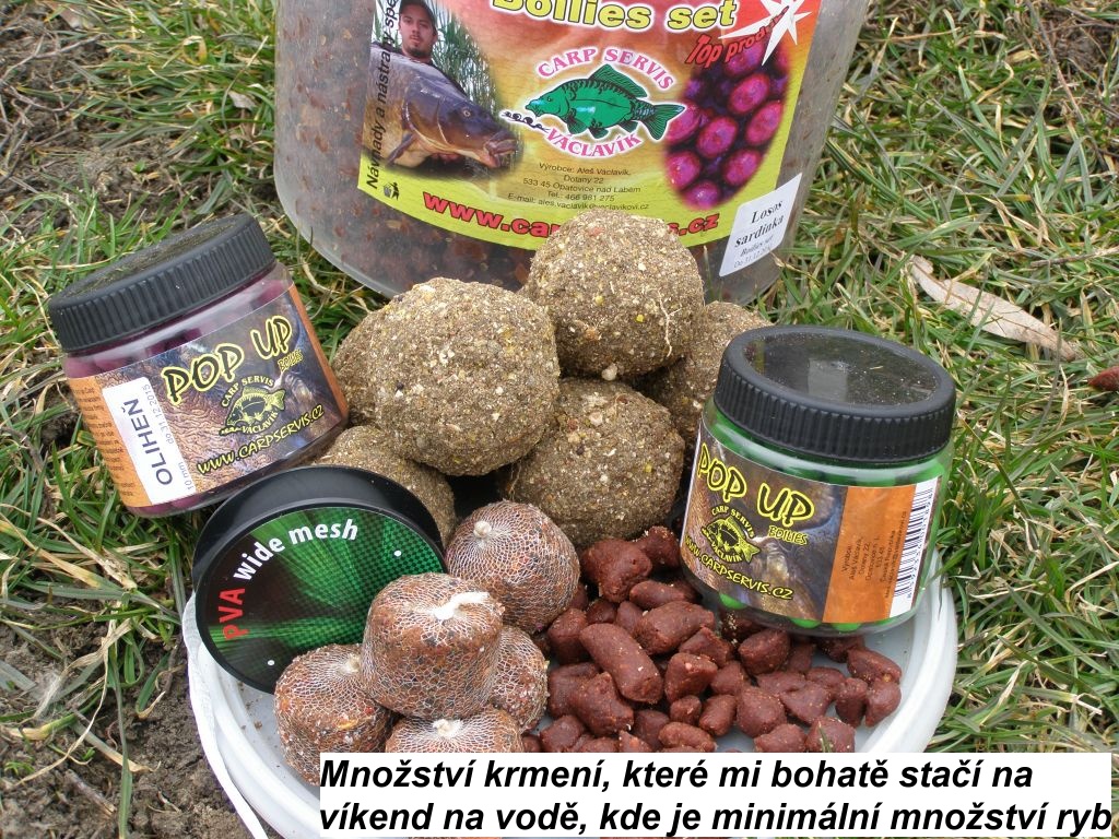 Další téma na dlouhé debaty. Po spoustě pokusů, experimentů a šíleností jsem dospěl k závěru, že méně je někdy více a více je někdy méně. Těžko říct, co by se stalo, kdybychom v danou dobu nakrmili více, jestli by to přineslo více záběrů nebo naopak jestli by jsme ryby překrmili a záběry ubyly. Krmím podle obsádky – pokud jde o vodu, kde je minimum ryb a je možné že třeba i žádné, krmím minimálně a používám spíš jen pva. Pokud jde ale o vodu, kde je dostatečná obsádka, dostanu se do svého krmícího záchvatu, kdy jsem během dne schopný zkrmit 5 i 10 kg boilies, k tomu pelety, partikl. Prostě když tam ty ryby jsou a žerou, proč jim to nedat!? Jde mi jen o jednu věc – odlišit se od ostatních. Samozřejmě pokud bych si sedl na místo mezi dva rybáře a viděl, že oba dost krmí, klidně bych zkusil chytat i úplně bez krmení. Jak říkám, záleží na situaci a nikdy nezjistíme, co by kdyby, prostě to musíme risknout. Samozřejmě je to věc názoru. Zákony, řád atd. nás dost omezují, ale v tomhle máme naštěstí ještě možnost svobodné volby.